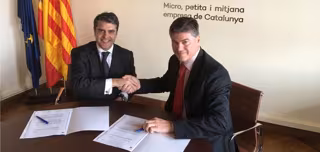 El secretario general de la patronal catalana, Antoni Cañete, y el director corporativo territorial en Catalunya de Bankia, Miguel Capdevila, han firmado el convenio de colaboración este jueves, ha informado Pimec en un comunicado.