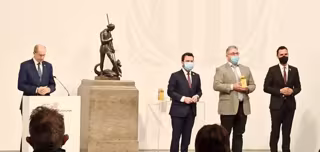 Los responsables del Gremi, junto al presidente de la Generalitat, Pere Aragons, en la entrega del premio. - PIMECOMER