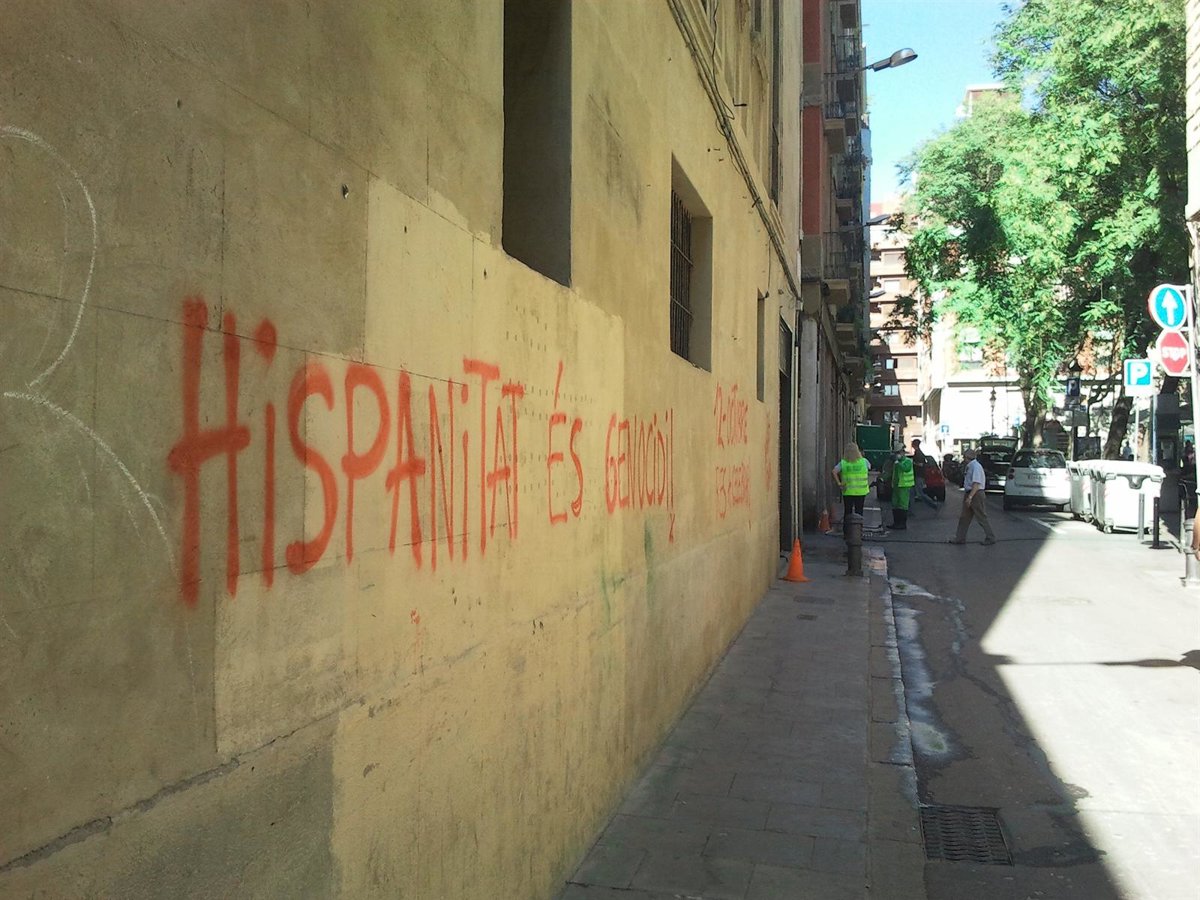 El barrio barcelonés de Gràcia ha amanecido este miércoles con varias pintadas contra la Fiesta Nacional y, durante la mañana, operarios municipales han limpiado los lemas referentes al Día de la Hispanidad, según ha podido comprobar Europa Press.