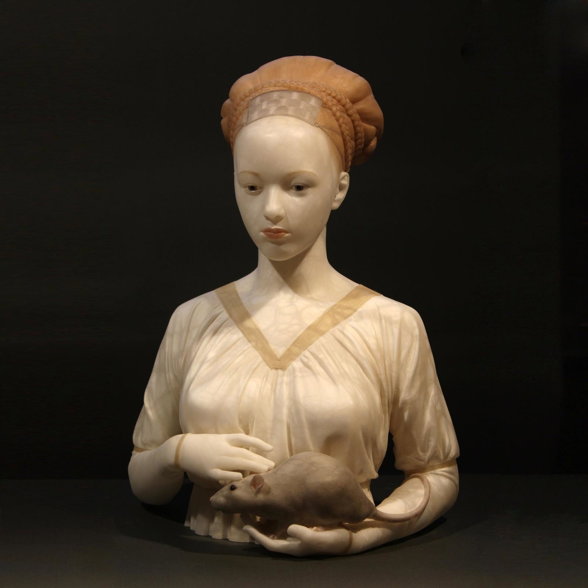 Destaca también la serie de mujeres talladas en alabastro, las 'damas', una de las más conocidas, la 'Dama de la rata', que fue presentada como una versión del conocido modelo 'La dama del armiño' de Leonardo da Vinci, fuente de inspiración para el escultor que asegura fijarse más en la pintura que en la escultura a la hora de crear una obra.