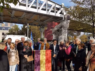 Pisarello ha participado en la ofrenda floral ante la escultura a las Brigadas Internacionales en la estación de Austerlitz organizada por la Association des Amis des Combattants en Espagne Républicaine (Acer).