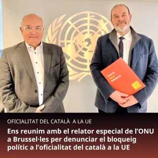 El presidente de Plataforma per la Llengua, Òscar Escuder, se ha reunido este lunes en Bruselas con el relator especial de la ONU sobre Cuestiones de las Minorías, Nicolas Levrat, y le ha trasladado el rechazo de la entidad al "bloqueo político" que, consideran, frena el reconocimiento del catalán como lengua oficial en la Unión Europea (UE).