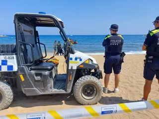 Efectivos del Servicio Marítimo de la Guardia Civil controlan la zona del mar, mientras la Guardia Urbana y los Mossos d'Esquadra se centran en la zona de la playa.