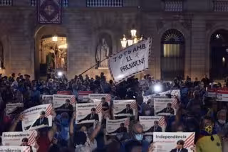 BARCELONA, 24 Sep. (EUROPA PRESS) - La plaza Sant Jaume de Barcelona se ha llenado de manifestantes este viernes por la noche en apoyo al expresidente de la Generalitat, Carles Puigdemont, tras su detención y puesta en libertad en Italia. Han llevado pancartas de 'No surrender' (Sin rendición) e 'Independència' y la convocatoria de manifestación de la AMI ante todos los ayuntamientos catalanes se ha mantenido después de que Puigdemont haya quedado en libertad. Han asistido el conseller de Economía y Hacienda, Jaume Giró; el de Salud, Josep Maria Argimon; la de Derechos Sociales, Violant Cervera, y la de Justicia, Lourdes Ciuró, además del exconseller de la Generalitat Jordi Turull. Una hora antes, unas 50 personas convocadas por los CDR se han manifestado desde los Jardinets de Gràcia, bajando por la Via Laietana, en dirección a la plaza Sant Jaume.