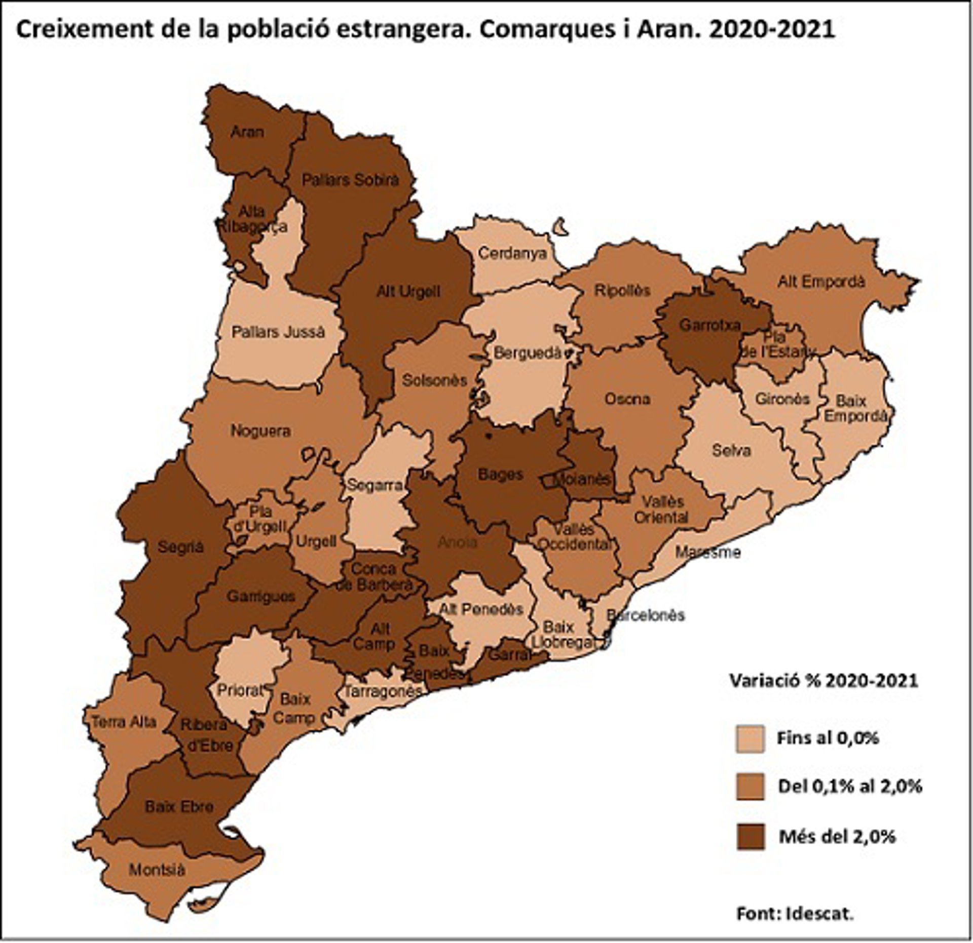 Crecimiento de la población extranjera por comarcas 2020-2021 - IDESCAT
