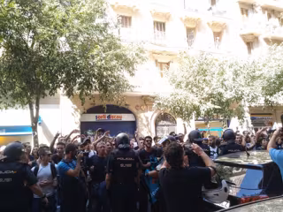 Según ha comprobado Europa Press, dentro de la sede hay una veintena de militantes de la CUP y a las puertas se han concentrado más de un centenar de perosnas, entre ellas el exdiputado David Fernàndez y las diputadas Mireia Boya y Gabriela Serra.