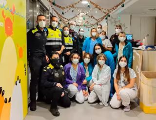 Los agentes han entregado regalos a los niños ingresados en el centro hospitalario y ha estado un rato jugando con ellos.