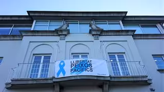 El Ayuntamiento de Port de la Selva (Girona) ha cambiado este jueves la pancarta que pendía de su fachada a favor de los políticos independentistas presos por otra que reclama la libertad de los "peces pacíficos".