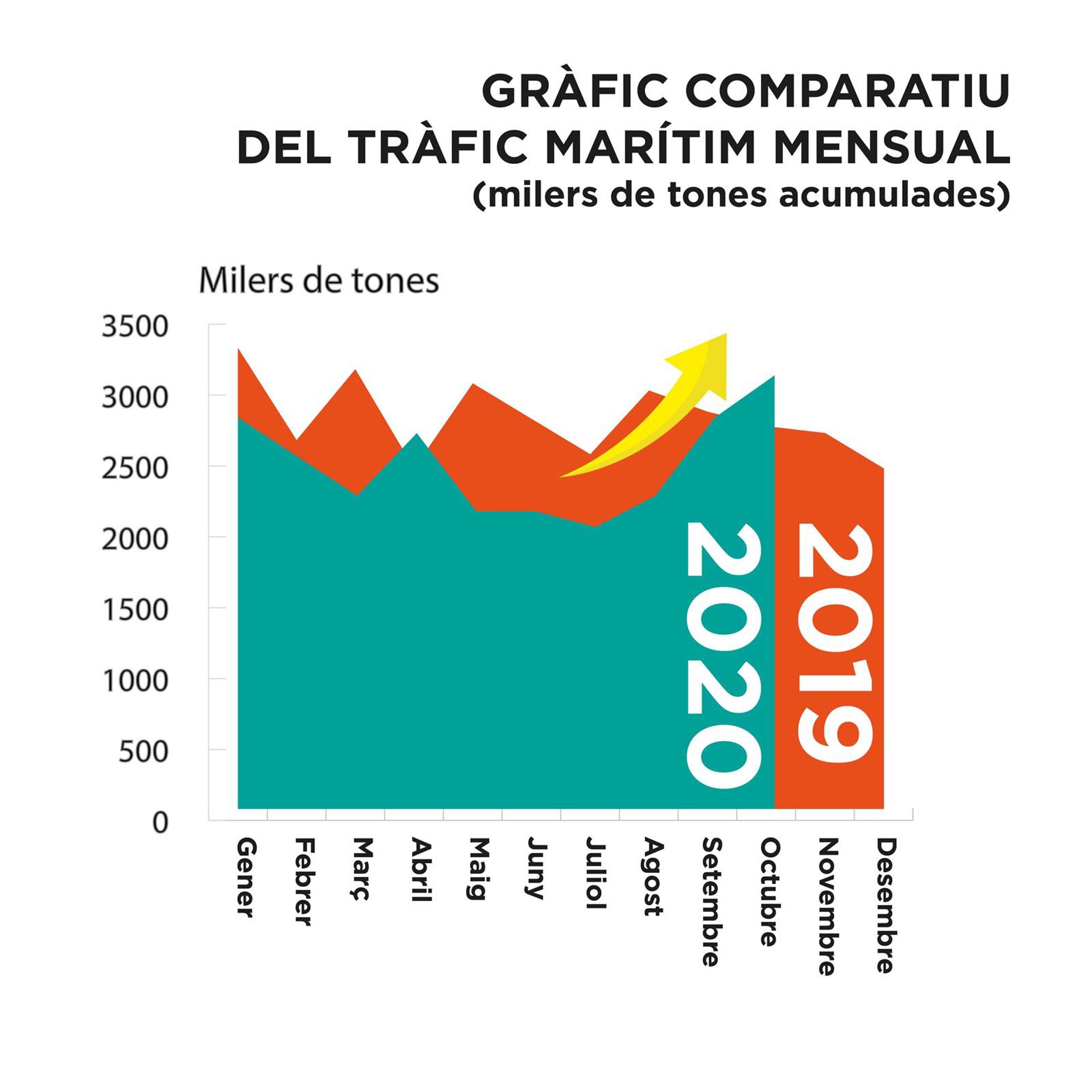 El Port de Tarragona ha acumulado tres meses consecutivos con el tráfico al alza marcando un cambio de tendencia que se inició en julio debido a la situación actual de la Covid-19, y con este último mes de octubre como el periodo con mejor resultado de 2020.