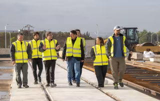 La nueva infraestructura permitirá recibir trenes de mercancías de hasta 750 metros de longitud, y la han visitado la directora de operaciones del enclave, Núria Oriols; el jefe de la división de Infraestructuras, Josep Lluis Román, y el responsable de Infraestructuras, Óscar García, junto al alcalde de Marchamalo, Rafael Esteban.