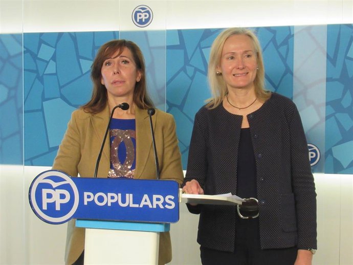 La diputada popular ha comparecido junto a la secretaria primera de la Mesa del Congreso, Alícia Sánchez-Camacho, quien ha asegurado que los PGE de Pedro Sánchez "disminuyen la presencia del Estado en Catalunya en un 30%, algo que no había pasado hasta ahora".