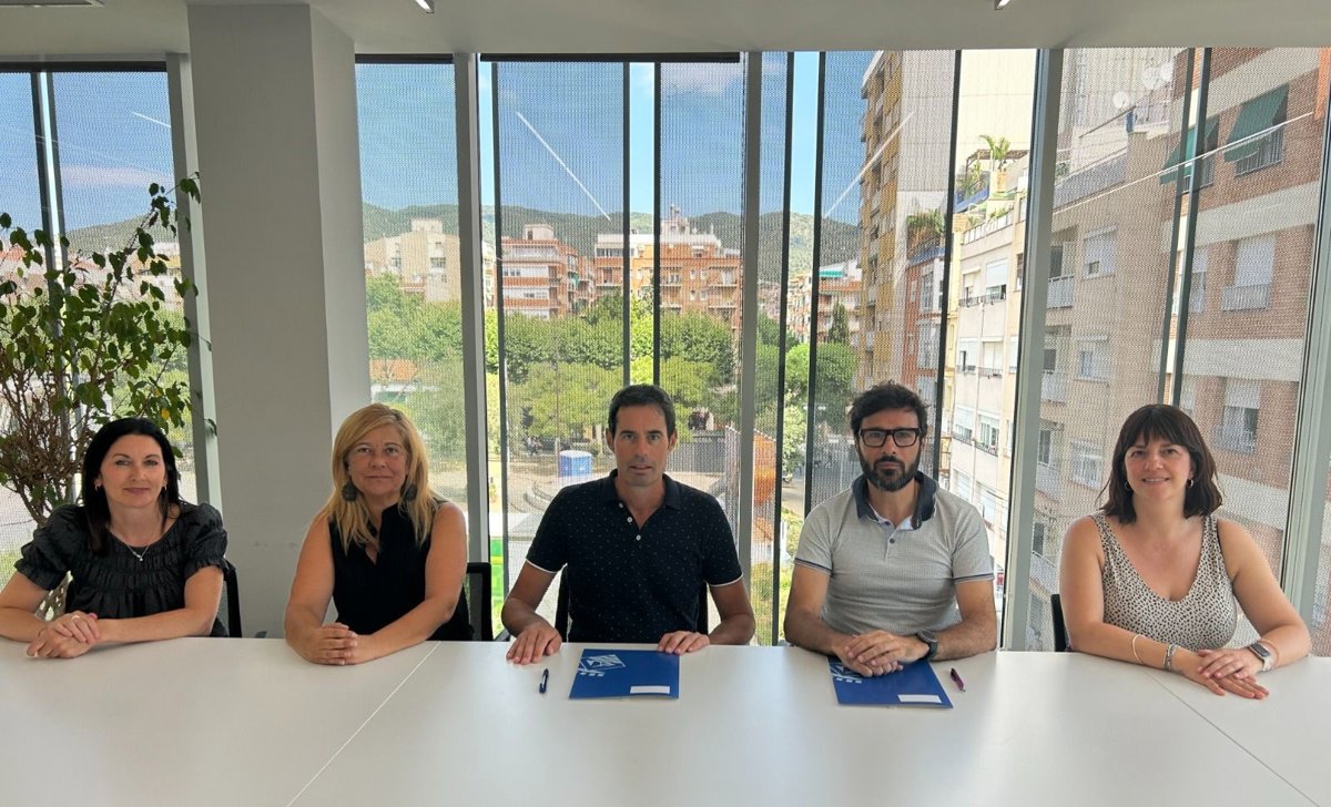 Las concejalas del Ayuntamiento de Premià de Mar Cesca Domènech e Imma Morales; el director de Agbar Maresme, Joaquim Vicens; alcalde de Premià Rafa Navarro, y la responsable de Clientes de Agbar en el Maresme, Heidi Garcia - AGBAR