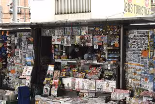 Un trabajador dentro de su quiosco que permanece abierto en el sexto día de confinamiento por coronavirus, siendo uno de los pocos establecimientos que tienen permitida su apertura durante el estado de alarma, en Madrid (España), a 20 de marzo de 2020. - Óscar Cañas - Europa Press