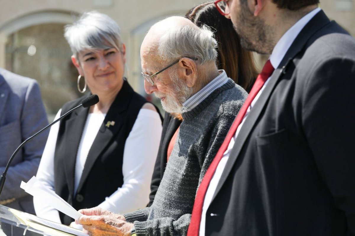 La consellera de Justicia, Lourdes Ciuró, junto a Dan Bessie, hijo del brigadista Alvah Bessie que da nombre al nuevo programa de memoria democrática. El 29 de abril de 2022. - CONSELLERIA DE JUSTICIA