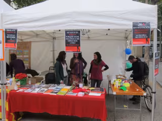 La plataforma 'Prostitutas Indignadas', que aglutina a mujeres que ejercen la prostitución, colectivos, entidades y vecinos, ha dispuesto una pequeña carpa desde la que han vendido libros vinculados con su oficio y han difundido folletos en los que anuncian la manifestación de este jueves por las calles de Barcelona.