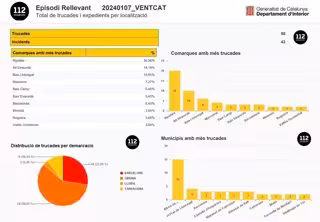 Protecció Civil de la Generalitat ha dado por cerrado el episodio por fuertes vientos que ha afectado a Catalunya este fin de semana y ha desactivado a las 19 horas de este domingo la alerta del plan especial de emergencias Ventcat, activo desde el viernes por la tarde, y lo ha pasado a fase de prealerta.