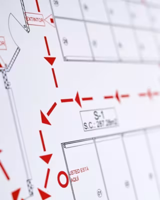 Un plano para indicar las salidas de emergencia de un establecimiento, en una imagen de recurso - PROTECCIÓ CIVIL