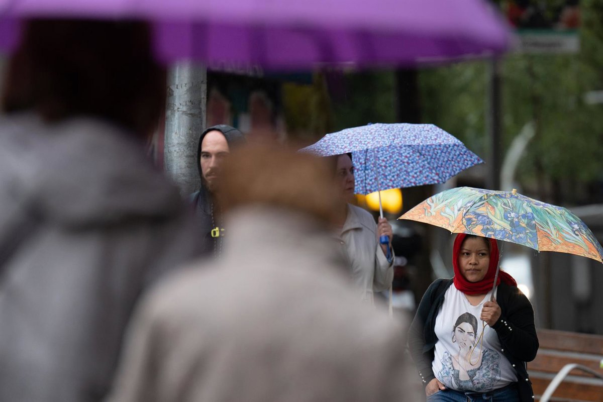 Archivo - Varias personas con paraguas pasean por una de las calles de la ciudad, a 12 de mayo de 2023, en Barcelona, Catalunya (España) - David Zorrakino - Europa Press - Archivo