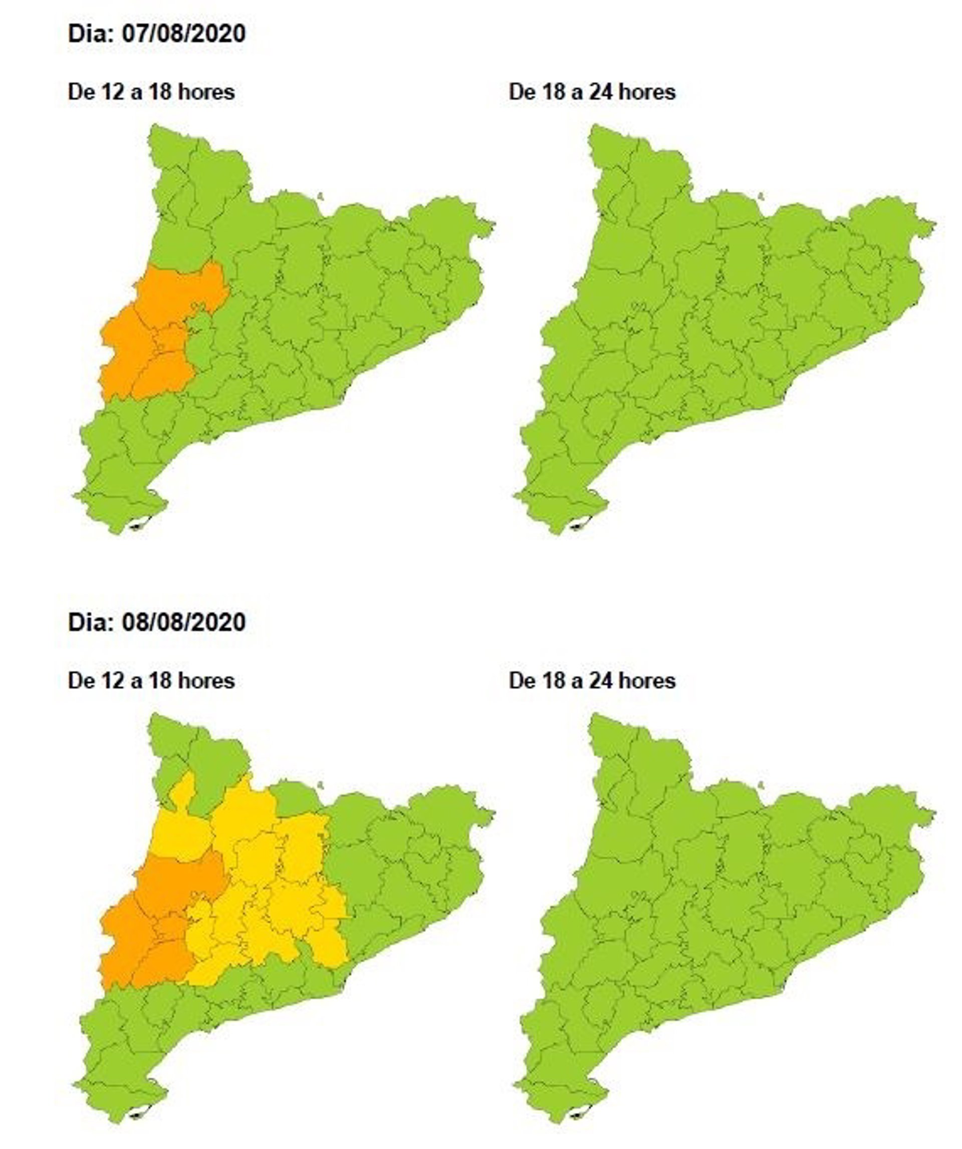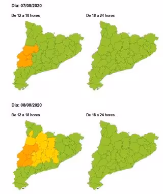Mapa de avisos por ola de calor a partir del viernes 7 de agosto de 2020. - PROTECCIÓN CIVIL DE LA GENERALITAT