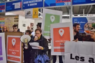 Han realizado acciones de protesta como exhibir pancartas en las que ponía 'Aquí, militars no' ('Aquí, militares no') y esparcir por el suelo ropa de color caqui con tinta roja, como han compartido en las redes sociales entidades como la Coordinadora de ONG Solidaries, Girona Acull y la CUP de Girona.