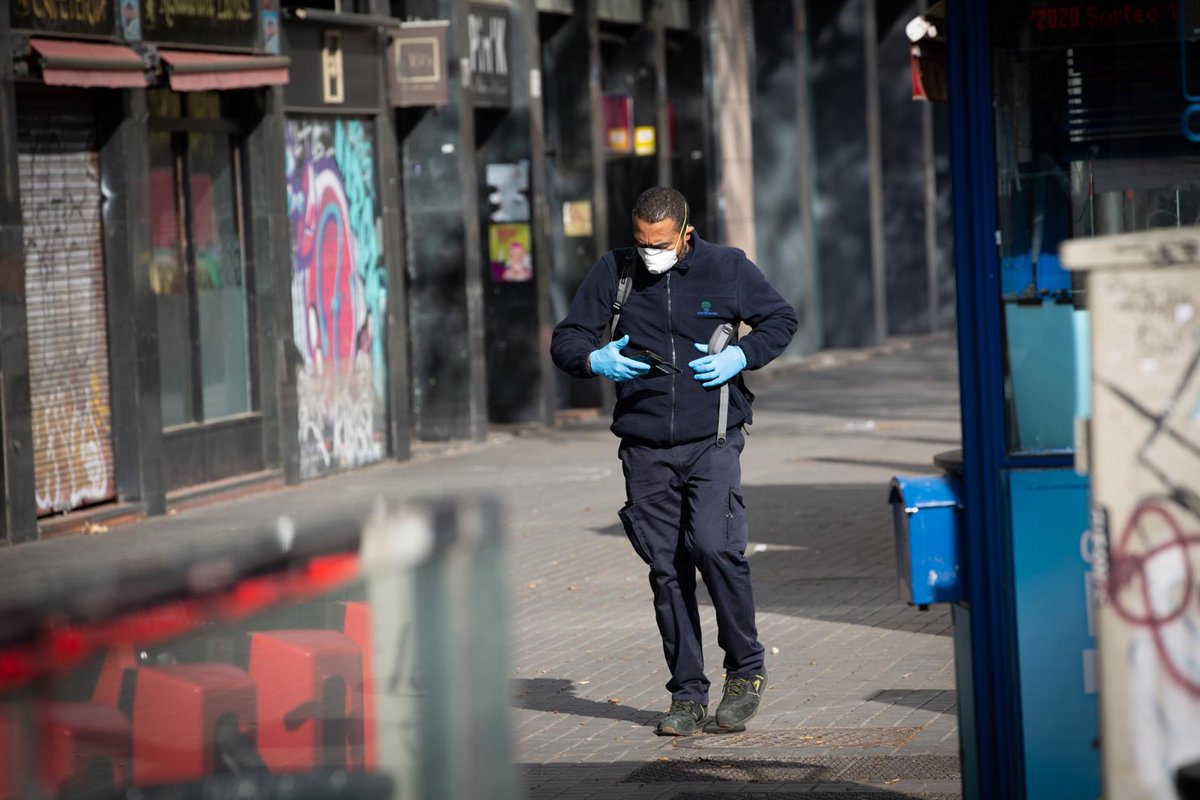 Un hombre protegido con mascarilla y guantes camina por una calle durante el noveno día laborable desde que se decretó el estado de alarma en el país a consecuencia del coronavirus, en Barcelona/Catalunya (España) a 26 de marzo de 2020. - David Zorrakino - Europa Press