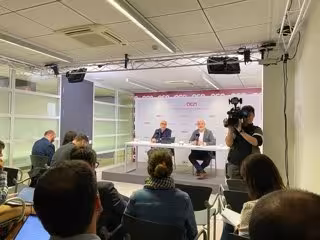 El candidato del PSC a la alcaldía de Barcelona, Jaume Collboni, en una rueda de prensa de la ACN. - EUROPA PRESS