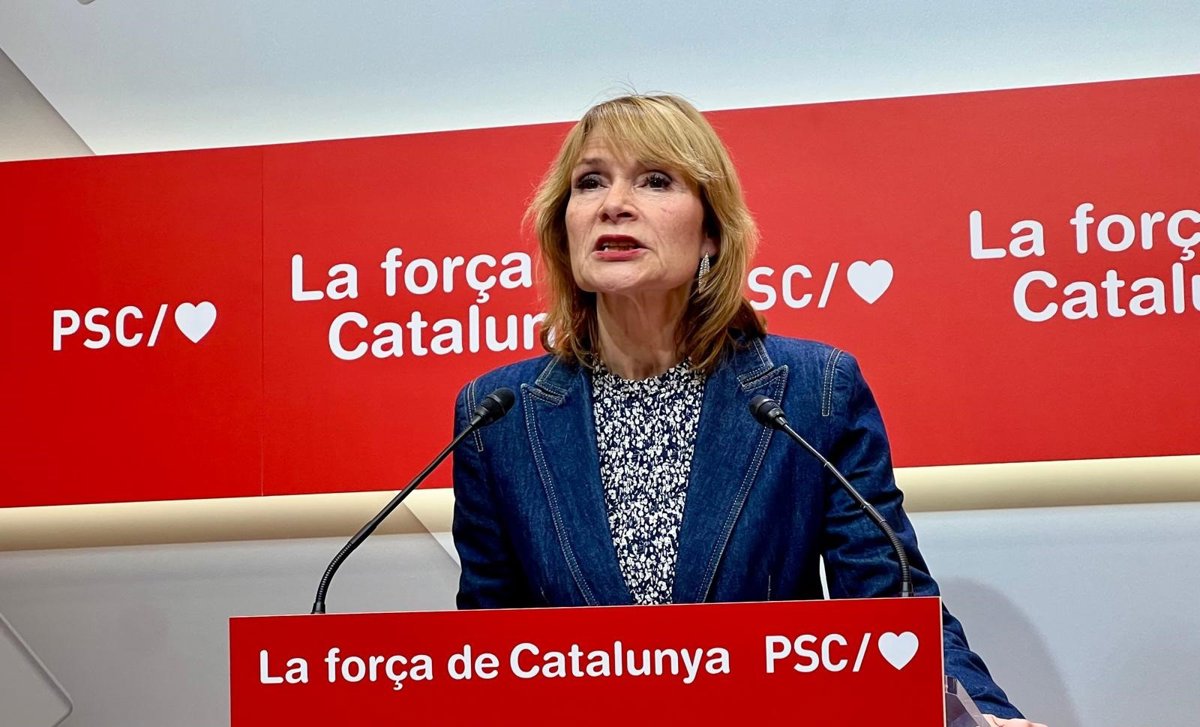 La viceprimera secretaria y portavoz del PSC, Lluïsa Moret, en una rueda de prensa desde la sede del partido - EUROPA PRESS