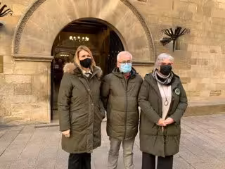 Las concejales socialistas Begoña Iglesias y Carme Valls con el portavoz del grupo, Jaume Sellés, en la puerta del Ayuntamiento de Lleida. - EUROPA PRESS