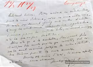 La asocaición Memòria i Història de Manresa (Barcelona) ha publicado en su página web cinco cartas inéditas del ex presidente de la Generalitat, Lluís Companys, escritas desde la prisión y dirigidas al industrial y político Jaume Creus, cuando ambos estaban encarcelados por los Hechos del Seis de Octubre de 1934.
