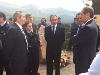 Al finalizar su visita al parque, el conseller ha realizado una ofrenda floral ante el monolito que recuerda a los cincos bomberos fallecidos.