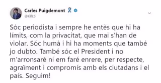"Soy periodista y siempre he entendido que hay límites, como la privacidad, que nunca se tienen que violar. Soy humano y hay momentos en que también yo dudo. También soy el presidente y no me encogeré ni me echaré atrás, por respeto, agradecimiento y compromiso con los ciudadanos y el país. ¡Seguimos!", ha dicho en un tuit recogido por Europa Press.