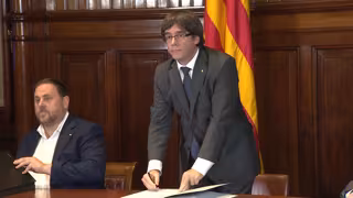 El presidente de la Generalitat cesado, Carles Puigdemont, ha manifestado su "orgullo" por representar al pueblo catalán con un vídeo en el que manifestantes que cortaron el AVE cantan 'Els Segadors'.