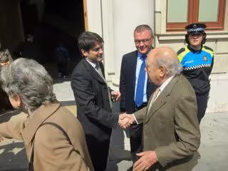 El que fuera el líder de CiU y presidente de la Generalitat durante 23 años, Jordi Pujol, y su hijo, que será aupado este fin de semana a la secretaría general de CDC, Oriol Pujol, han simbolizado este viernes el relevo generacional en el partido con un apretón de manos a las puertas del Ayuntamiento de Reus (Tarragona).