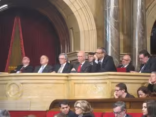 El pleno extraordinario del Parlament para pedir al Congreso que transfiera la competencia de convocar una consulta ha empezado este jueves con una tribuna de invitados ocupada por el expresidente de la Generalitat Jordi Pujol (CDC), los expresidentes del Parlament Joan Rigol (UDC) y Ernest Benach (ERC), y el alcalde de Barcelona, Xavier Trias (CDC).