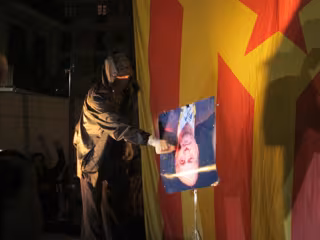 Tres encapuchados han quemado este miércoles por la noche un retrato del Rey y una bandera española, una francesa y una de la UE.