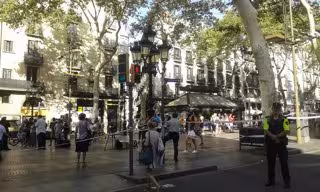 La Rambla, lugar de paso para miles de turistas cada día, y calle típica de la que se dice popularmente que los barceloneses siempre van con prisa, agolpaba personas en calma que iban haciendo fotos a quioscos típicos y tiendas que intentaban abrir con normalidad, a pesar de las cintas policiales y las patrullas.