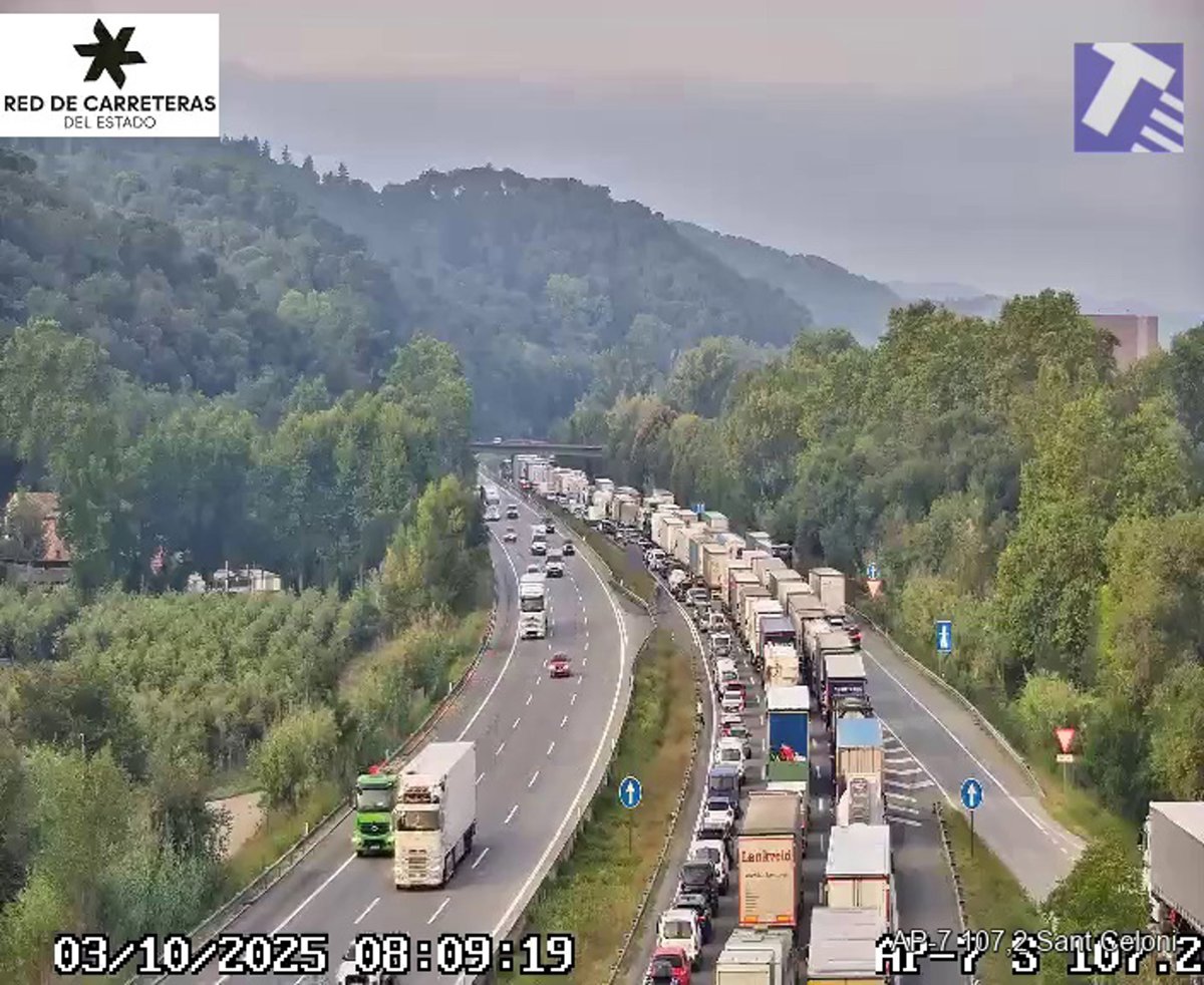 La vía ha estado cortada alrededor de una hora y ha registrado hasta 6 kilómetros de colas, ha informado el Servei Català de Trànsit (SCT) en un mensaje en 'X' recogido por Europa Press.