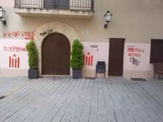 El Ayuntamiento de Pontons (Barcelona) ha amanecido este domingo con pintadas independentistas en las paredes, después de que el alcalde, Lluís Caldentey (PP), se negase a ceder ningún espacio municipal para el proceso participativo del 9N.