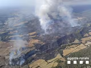 El incendio se declaró sobre las 14.40 horas del sábado, obligó a desalojar varias masías y casas de colonias de la zona por su propagación.