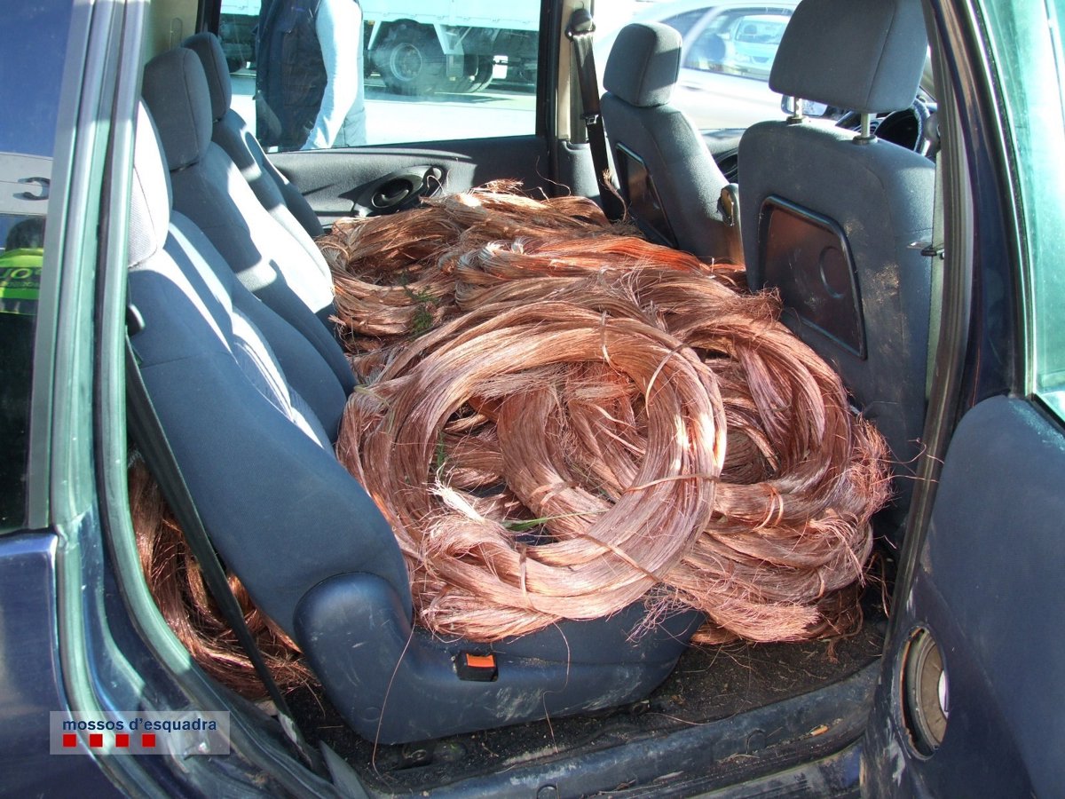 Los agentes registraron una furgoneta cerca de una chatarrería de Sant Boi de Llobregat (Barcelona), y hallaron casi 1.000 quilos de cobre escondido, repartido por la furgoneta y preparado para su venda, han informado este sábado la policía catalana en un comunicado.