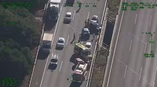 Un accidente en la autopista AP-7 a la altura de Gelida (Barcelona), en el que están implicados cuatro vehículos, deja retenciones en sentido sur y una persona herida leve. En Gelida (Barcelona), el 5 de agosto de 2020. - SERVEI CATAL DE TRNSIT (SCT)