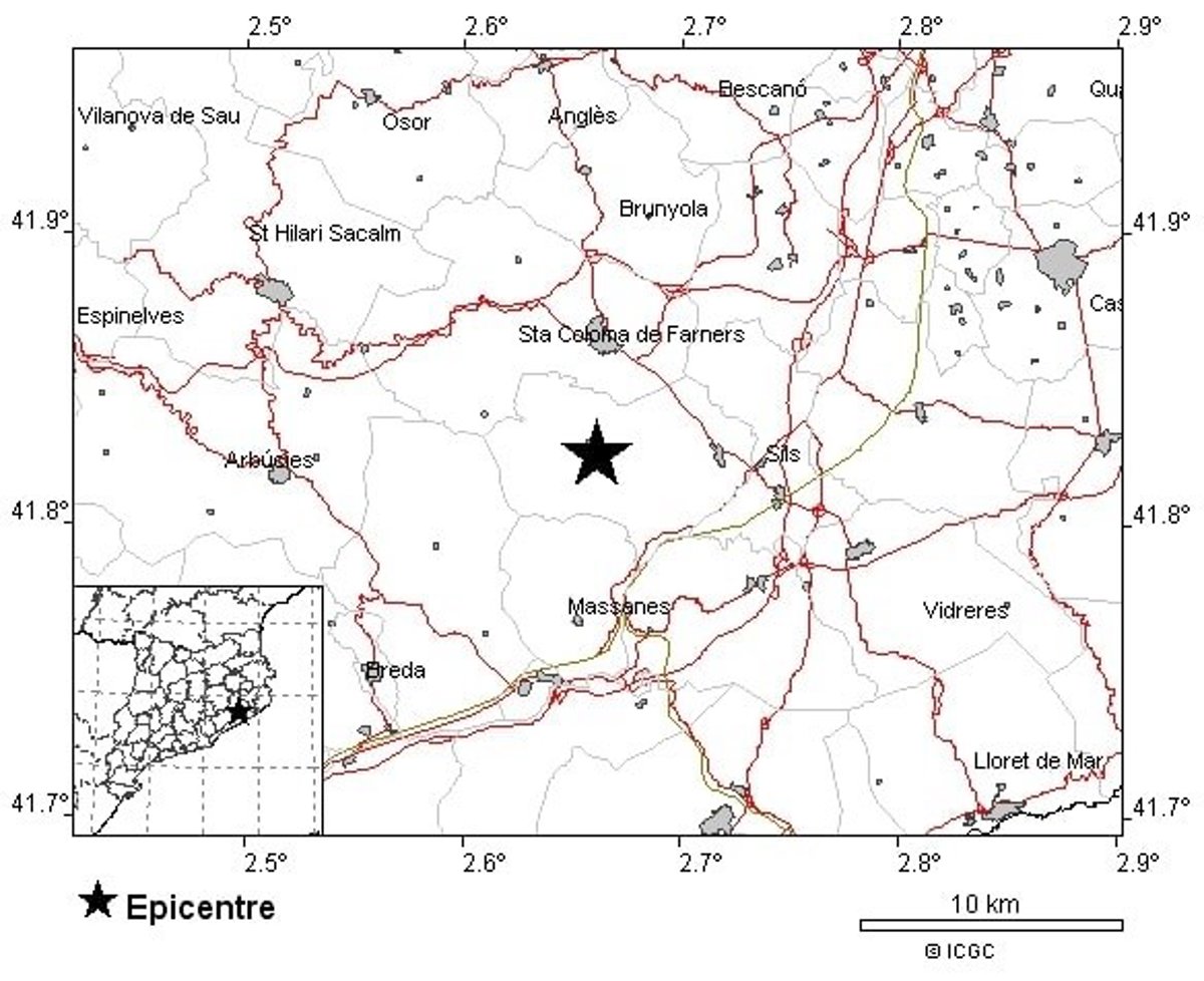 El seísmo se ha producido a las 14.47 horas, a una profundidad de 5 kilómetros, y el epicentro se ha situado entre las localidades de Santa Coloma de Farners, Riudarenes, Arbúcies y Massanas, en la provincia de Girona.
