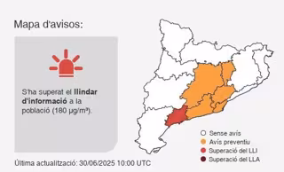 En un apunte en 'X', recogido por Europa Press, explica que entre las 9 y las 10 horas se han registrado niveles por encima de los 180 microgramos por metro cúbico en el punto de medición Tarragona - Parc de la Ciutat, y que se prevé que los valores se mantengan altos durante las próximas horas en esta región.