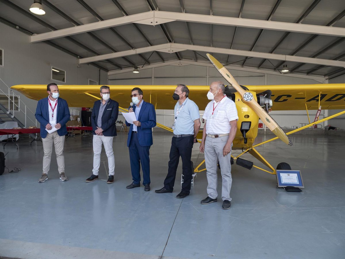 El Reial Aeri Club de Lleida ha presentado este jueves en sus instalaciones en el aeropuerto de Lleida-Alguaire la restauración el avión más antiguo de España con permisos de vuelo, el 'Piper J3'.