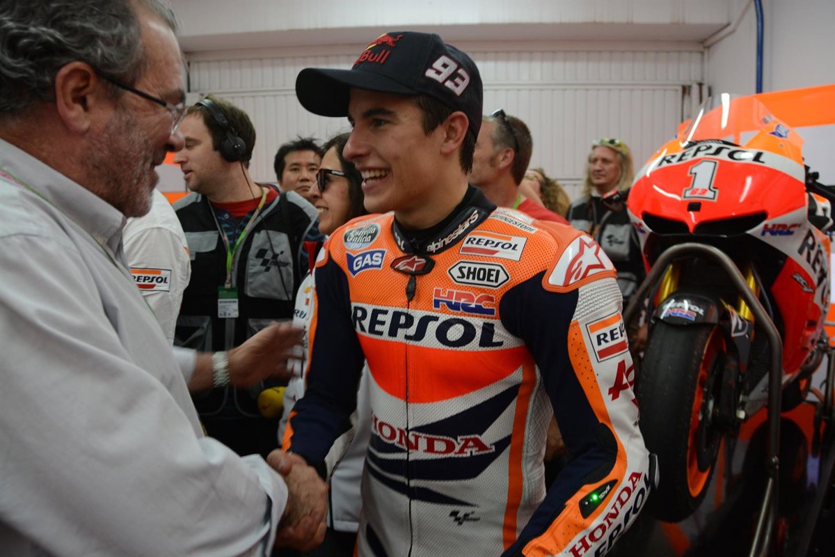 El presidente de la diputación de Lleida, Joan Reñé, ha felicitado en persona este domingo al piloto de Cervera Marc Márquez, que se ha proclamado campeón del mundo de MotoGP.