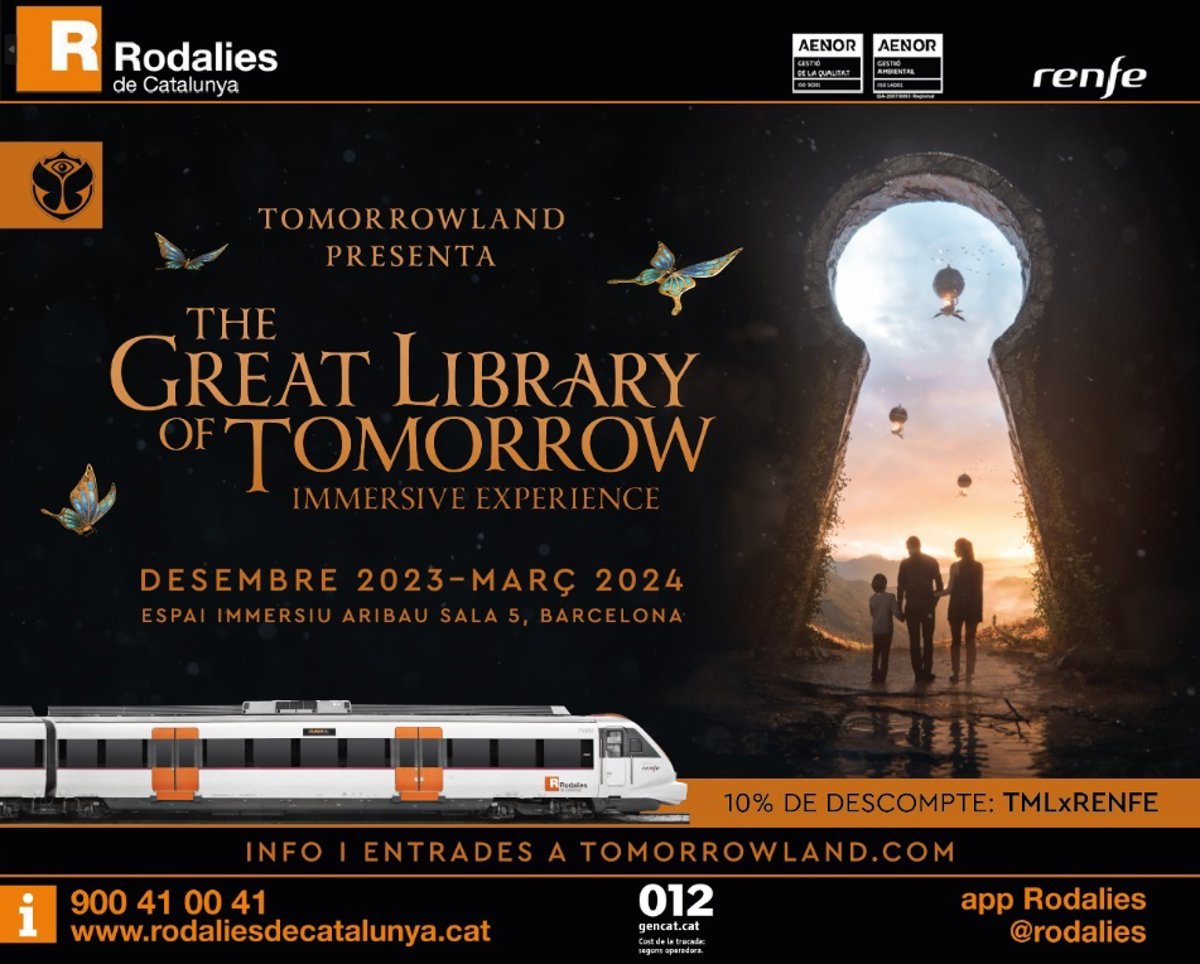 Renfe ofrece un 10% de descuento en las entradas del espectáculo 'The great library of Tomorrow' del Festival Tomorrowland a los usuarios que muestren un billete o bono de Rodalies, hasta un máximo de 50 entradas diarias.