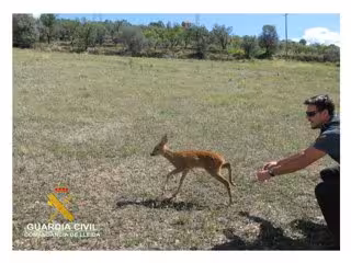Agentes de la Patrulla del Servicio de Protección de la Naturaleza (Seprona) de la Guardia Civil recuperaron y devolvieron al medio natural una cría de corzo que estaba desorientada en la carretera de acceso a la Ermita de Sant Miquel, en las inmediaciones de Pobla de Segur (Lleida), el pasado 14 de agosto.
