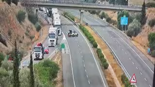 Imágenes del corte de la AP-7 y el desvío por la N-340 a raíz de la fuga en un camión de butano en L'Aldea (Tarragona) - SERVEI CATAL DE TRNSIT