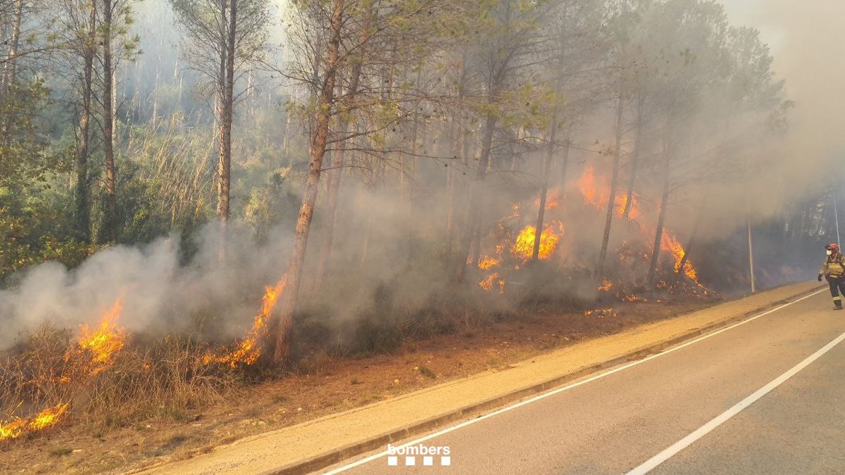 Sobre las 14.30, los Bombers de la Generalitat continúan en el lugar con 13 dotaciones y una unidad aérea para tratar de controlar y extinguir el incendio, informan en un apunte en 'X' recogido por Europa Press.