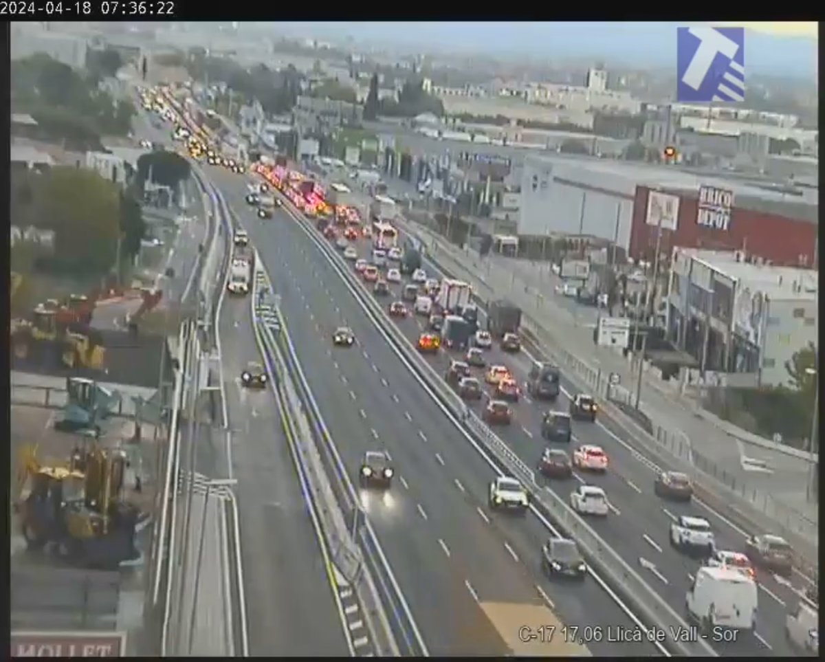 El accidente también afecta a la circulación de vehículos en sentido sur, que a la misma hora provoca 7 kilómetros de cola entre Mollet y Granollers (Barcelona).